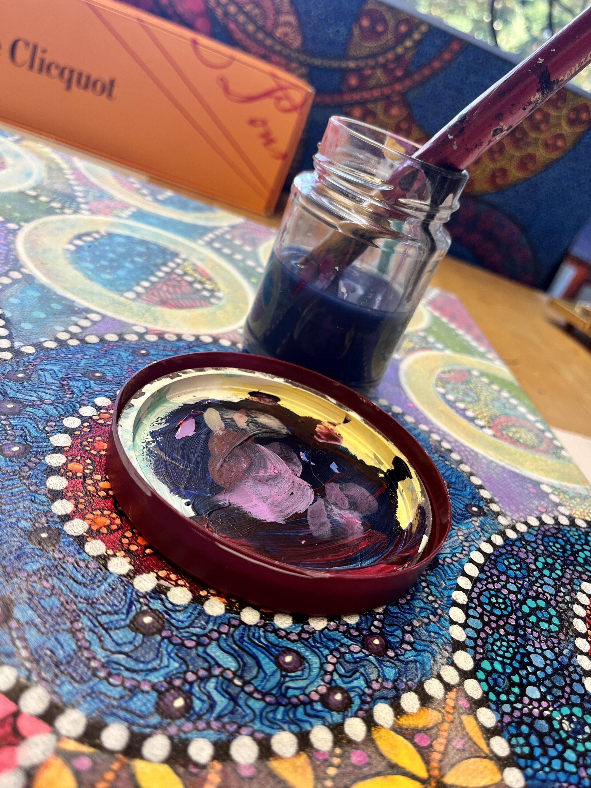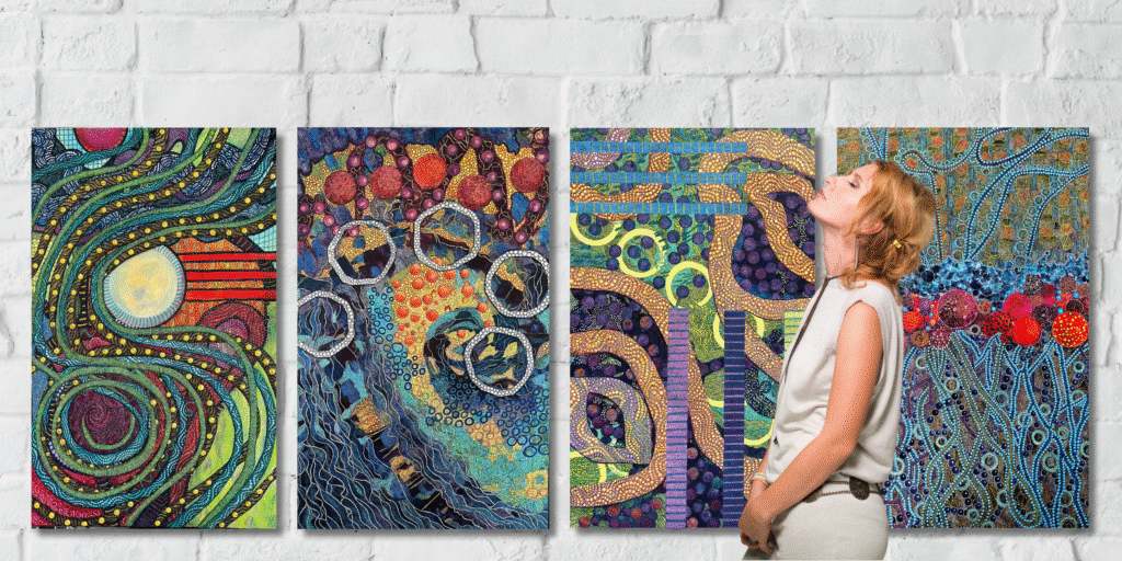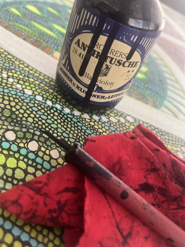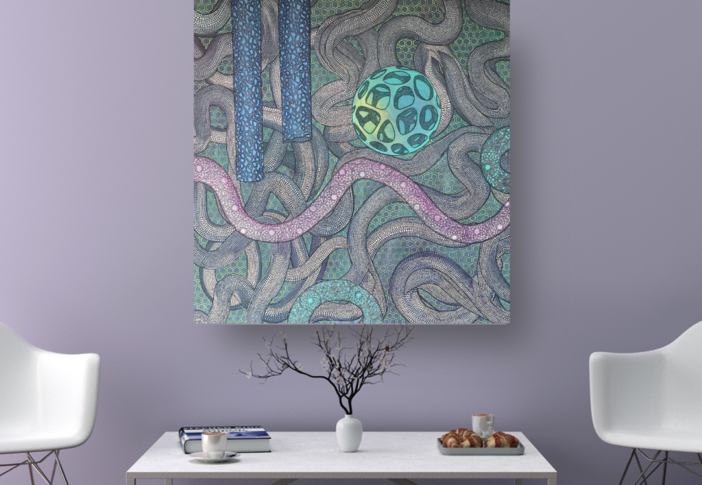 Die Bilder entstehen als Zusammenspiel zwischen Form und Farbe – in der Mischtechnik aus Acrylfarben und Zeichentusche.